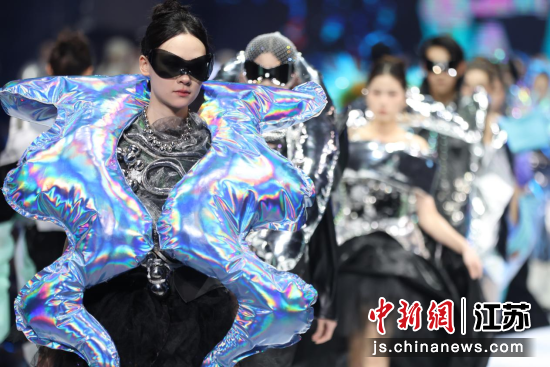 5月20日晚,南京艺术学院“数智・华服”——服装设计毕业作品秀精彩上演,模特轮番登台展示毕业生们的服装设计作品。中新社记者 泱波 摄