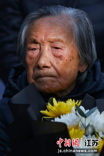 11月30日,侵华日军南京大屠杀遇难同胞纪念馆举行南京大屠杀死难者家庭祭告活动,南京大屠杀幸存者夏淑琴参加。当天,南京大屠杀幸存者、南京大屠杀历史记忆传承人、南京大屠杀遇难同胞遗属、青少年及志愿者代表等聚集在南京大屠杀遇难者名单墙(又称“哭墙”)前,祭奠在88年前遇难的亲人和同胞。中新社记者 泱波 摄
