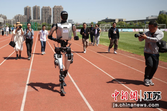 4月25日,首届具身智能机器人运动会在江苏无锡惠山区全民健身中心高燃开赛。各路机器人各显神通,参与竞速跑、越野跑、足球、篮球等项目,全面展现具身智能机器人领域的技术突破成果和应用落地成效。中新社记者 泱波 摄