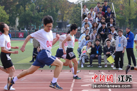 10月31日,江苏南京,裁判给抵达终点的选手计时。当日,南京农业大学第五十三届运动会田径比赛举行,进一步提升学生体质健康水平,打造运动校园、活力校园、健康校园。中新社记者 泱波 摄