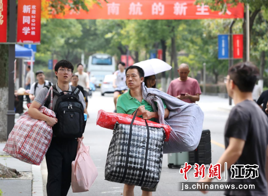 8月30日,南京航空航天大学将军路校区内,新生和家人带着行李走进校园,开启“我的大学”生活。中新社记者 泱波 摄