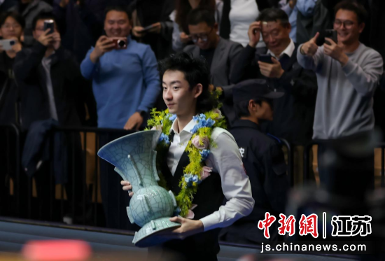 11月9日,在江苏南京举行的2025世界斯诺克巡回赛国际锦标赛决赛中,中国小将吴宜泽击败老将约翰·希金斯,夺得冠军。中新社记者 泱波 摄