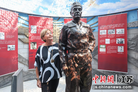 9月5日,江苏南京,美国飞虎队陈纳德将军的外孙女嘉兰惠、重外孙女罗宾斯,中国籍抗日航空英烈鲁美音的侄孙、美籍华人鲁照宁,以及中国籍抗日航空英烈陈端纮的侄孙陈钢,共同向南京抗日航空烈士纪念馆捐赠文物史料。中新社记者 泱波 摄