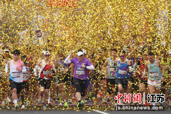 3月16日,2025南京半程马拉松鸣枪开跑。本次马拉松全程21.0975公里,赛道串联起建邺区商圈、金融城、青奥双子塔、长江上南京眼步行桥、江心洲滨江绿色步道等地标,吸引了两万五千名跑者前来竞逐春日赛道。中新社记者 泱波 摄