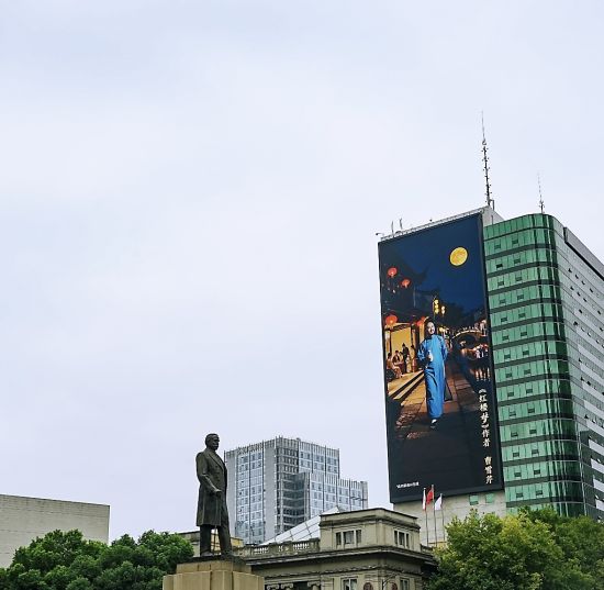 这两天,一幅画面登上了南京本地的热搜话题:清代文豪曹雪芹与一位现代都市青年,在秦淮河的两岸,隔着数百年时光,举杯相敬,共庆中秋,上演了一场跨越时空的“团圆”。