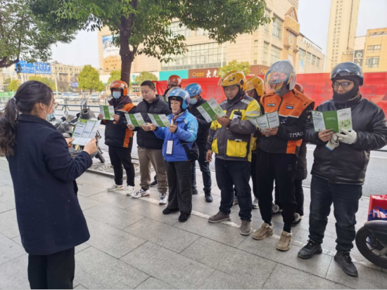 针对快递员、外卖员工作时间长、流动性大、信息获取渠道相对有限的特点,邮储银行泗洪县支行此次宣传活动打破常规,采取了“流动宣传+驻点讲解”的模式。