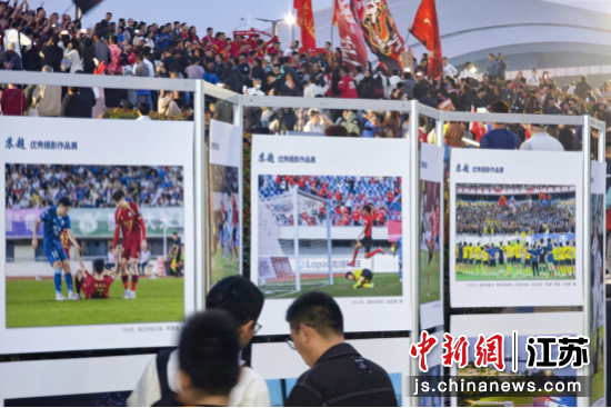 11月1日,“苏超”优秀摄影作品展在南京启幕。展览分别在南京奥体中心东门广场和江苏省现代美术馆展出。
