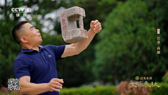 在高邮古城北门瓮城遗址,“石友”正在练习传统武术——撂石锁。三五十斤的石锁在几位“练家子”手中时而上下翻飞,时而相互抛接,时而稳稳落在拳、肘、肩上,整套动作行云流水,令人叫绝。
