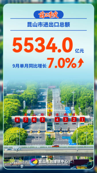 今年以来,昆山坚定不移抓项目、强治理、提质效、优作风,高质量发展取得新成效。特别是积极应对国际经贸斗争,及时出台稳外贸稳就业降成本等政策措施,推动各项工作赶在前、勇争先,有效稳住经济大盘,前三季度地区生产总值同比增长6%,高于苏州、高于全省,经济运行保持向好态势。