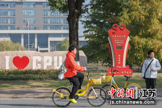 中国药科大学90周年校庆倒计时牌竖立在校园内。(中新网记者 泱波 摄)