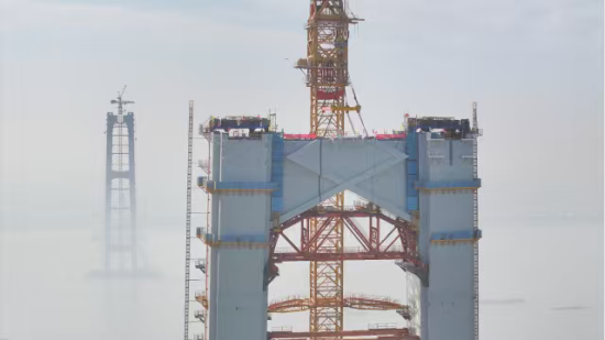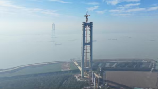 张靖皋长江大桥南航道桥北主塔率先实现毫米级合龙