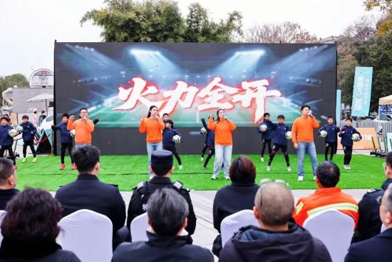 城市与幕后保障人员的奔现。“苏超”是人民足球,从来不只是球场上的90分钟,它属于每一个人。在赛事保障群里随时待命的公安民警、志愿者、医护人员、消防员、气象保障人员、地铁员工、奥体中心工作人员……这些最熟悉的“陌生人”,也走到舞台中央,成为这场活动的主角。