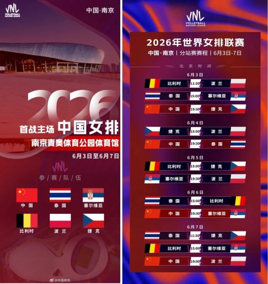作为全球最高水平的排球赛事之一,2026年世界女排联赛(中国·南京站)将于6月3日—7日在南京青奥体育公园体育馆打响,这也是中国女排新赛季的主场首战。中国、泰国、塞尔维亚、比利时、波兰和捷克的6支世界顶尖女排国家队齐聚金陵,展开12场巅峰对决,为市民和球迷带来世界级的排球观赛体验。