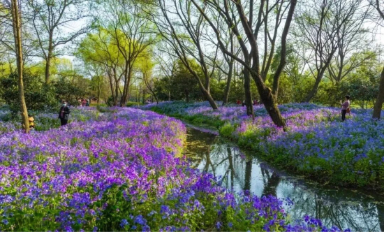 本次活动地点覆盖西南岛原生花田、林间溪岸及宋式回廊。3月14日上午10时,启动仪式将在闲云亭诗意开场,现场不仅有精彩的国风开场秀、二月兰大幅油画绘制,还有琵琶、中阮等传统乐器带来的春日音乐会。届时,百花神女主花船将亮相湖面,与岸边花海形成“溪畔寻芳”的意境,花神也将与市民游客互动巡游。