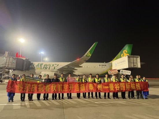 4月11日晚间,一架搭载180多名旅客的春秋航空9C6649次航班从扬州泰州国际机场顺利起飞,前往泰国曼谷,标志着扬州泰州国际机场开通曼谷航线。